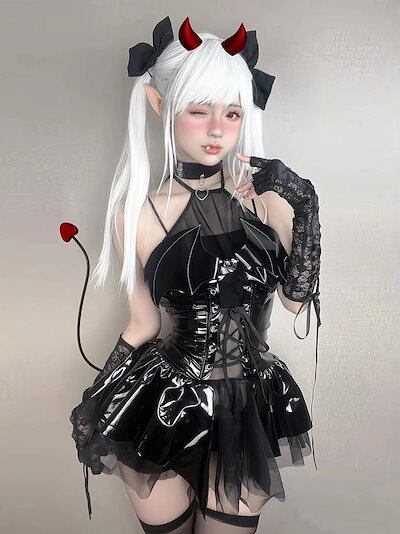 ロリータ コスプレ 2024新作 夏 ロリータ ワンピース 可愛い レース 着痩せ ロングスカート 小悪魔 スカートセット セクシー cos 3点セットサンタコスプレ