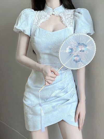 ロリータ 2024 新作 可愛い レディース 中国風改良チャイナ セクシー 着痩せ タイトスカートサンタコスプレ