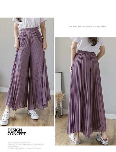 2024新作 プリーツパンツ ワイドパンツ リラックスパンツ 無地 フレアパンツ シフォン ガウチョ スカーチョ プリーツ パンツ レディース きれいめ 可愛い 大きいサイズ 体型カバー おしゃれ