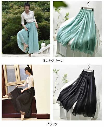 2024新作 ガウチョパンツ ワイドパンツ 無地 レディース 春 夏 フレアパンツ ガウチョ スカンツ スカーチョ ロングパンツ ズボン パンツ ロング丈 ロング シフォンパンツ ウエストゴム 大きい