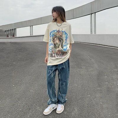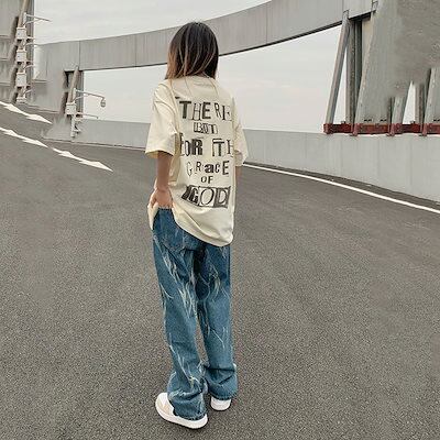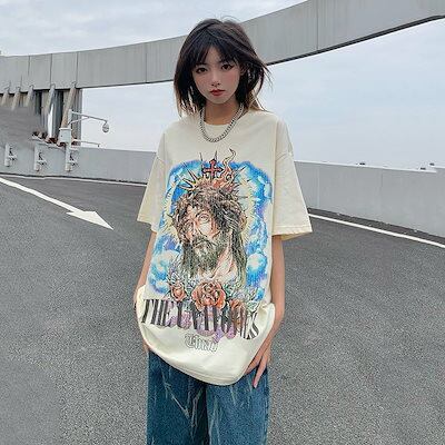 ロンT 2カラー 半袖 着痩せ Tシャツ ラウンドネック プリント 綿 快適 カットソー ゆったり トップス 男女兼用 カップル 春夏 ダンス カジュアル ファッション 原宿風 10-30代