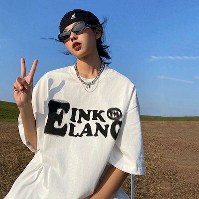 半袖 Tシャツ 2カラー ラウンドネック 着痩せ 英字 プリント ゆったり トップス 綿 快適 メンズ レディース 春 夏 カットソー カジュアル 原宿風 ファッション 10-40代