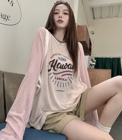 Tシャツ 長袖 薄手 カットソー 英字 着痩せ プリント 通気 日焼け防止 ロンT ゆったり ラウンドネック プルオーバー トップス レディース 春 夏 冷房対策 カジュアル かわいい ファッション