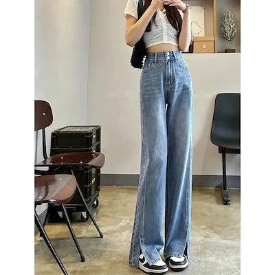 ハイウエスト スリットフォーク スリム ジーンズ レディース 修身 着痩 ファッション レディース ズボン