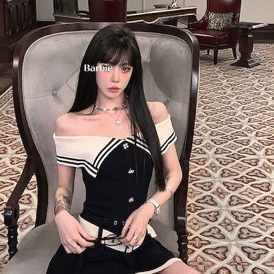 ロリータ 2024 新作 可愛い レディース 着痩せ ワンショルダー ワンピース ニット スカート枚 やせて見える ベルトを送るサンタコスプレ