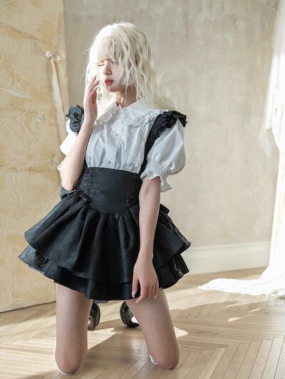 ロリータ コスプレ 可愛い サロペットスカート 着痩せ 大きい 蝶結び スカート 地雷系