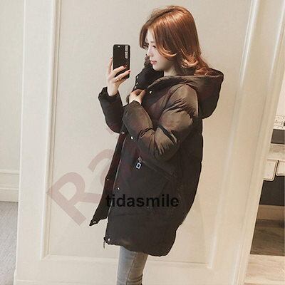 品質いいな新品 秋冬物 中綿コート ロング丈 ダウンジャケット風 レディース アウター 中綿入りジャケット 冬服 軽量 裏ボア フード付き 保温 防寒防風