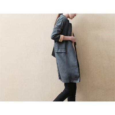 スプリングコート レディース トレンチコート 綿麻 春 薄手 ロングコート カジュアル アウター 2