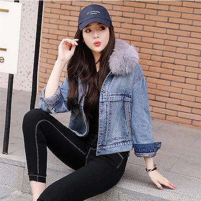デニムジャケット レディース ボアブルゾン フエークファー ボアジャケット ジージャン アウター 裏起毛 デニム 厚手 モコモコ きれいめ おしゃれ