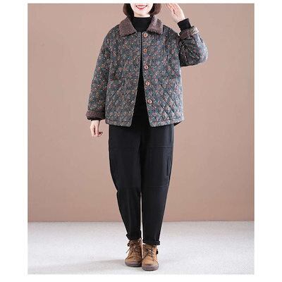 超目玉新品 キルティングコート ジャケット ボアコート 折り襟 中綿 アウター 羽織り 上着 長袖 防寒 ゆったり 秋冬 花柄 大きい カジュアル 40代 50代