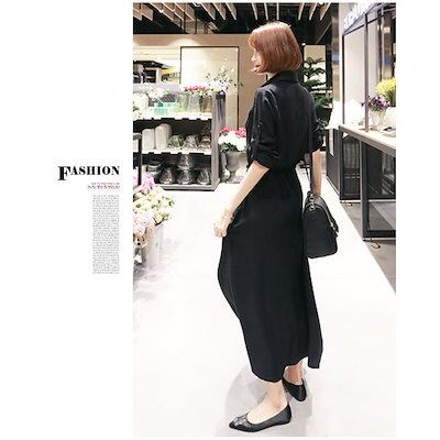 ワンピース レディース ロングワンピース 長袖 マキシ丈 シャツワンピ Aライン 上品 無地 大人