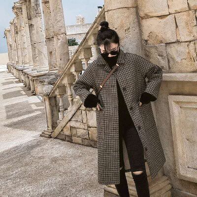 ステンカラーコート レディース 秋冬 チェック柄 チェスターコート ロング丈 ラシャコート ステンカ
