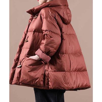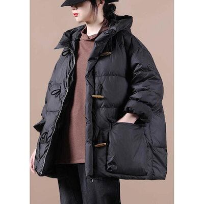 新作登場 ダウン ダウンコート ポケット ミディアム 無地 前開き トップス 長袖 秋冬 アウター 体型カバー 大きい ゆったり カジュアル