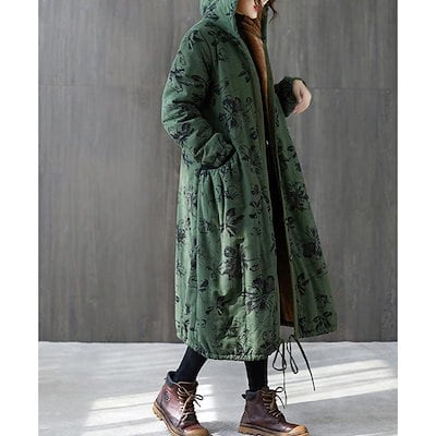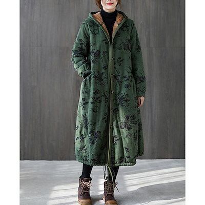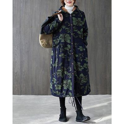 新作登場 中綿コート ロング 総柄 裏起毛 レディース 前開き トップス コート 長袖 秋冬 アウター 体型カバー 大きいゆったり カジュアル