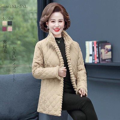 高級な質感 キルティングコート 裏起毛 チュニックコート レディース 冬 アウター 立ち襟 中綿 体型カバー 大きい ママ服