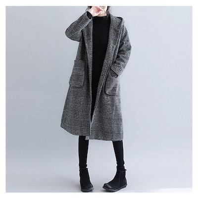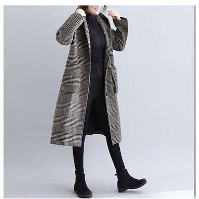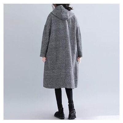 チェスターコート チェック柄フードコート レディース 秋冬 アウター ジャケット グレンチェック Aライン 防寒対策 羽織り ポケット付き