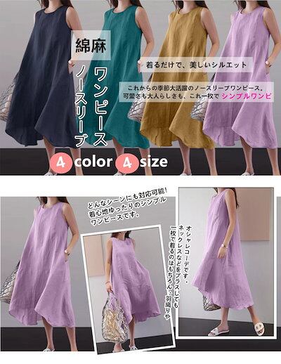 ワンピース レディース 夏 ノースリーブ 綿麻ワンピース きれいめ ロング レディース リネン風 森ガール マキシワンピース ゆったり 大きいサイズ 体型カバー シンプル