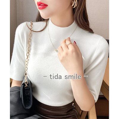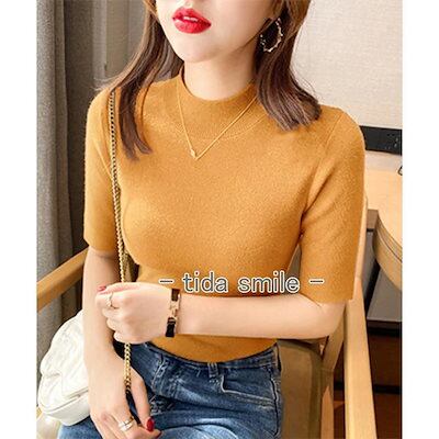 モックネック ニットトップス レディース 五分袖韓国