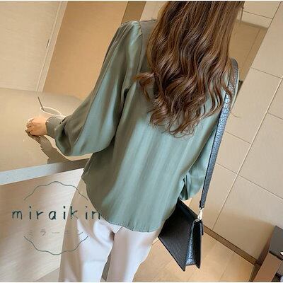 新入庫 ブラウス レディース 春 夏 春夏 トップス 白 ボウタイ チュニック 長袖 Yシャツ ホワイト イー ベージュ グリーン 20代 30代 40代 ママ 母 OL