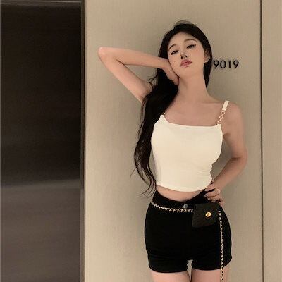 2024 人気 カップ付きインナー ニッチデザイン スイート チェーン セクシー スリミング 着痩せ 百掛け 質感 チェストパッド付き キャミソール タンクトップ ヨガ 美背 レディース