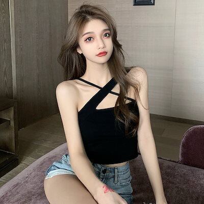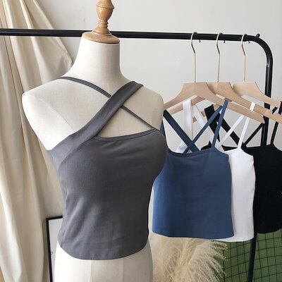 2024 人気 カップ付きインナー ins ニッチデザイン クロス セクシー チェストパッド付き スリミング 百掛け ショート キャミソール タンクトップ ヨガ 美背 レディース