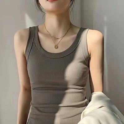 2024 人気 カップ付きインナー 着やせ アンダーウェア トップス リブ 大きいサイズ キャミソール タンクトップ ヨガ 美背 レディース