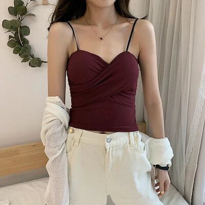 2024 人気 カップ付きインナー 春 着やせ アンダーウェア トップス ストラップレスブラ 無地 キャミソール タンクトップ ヨガ 美背 レディース