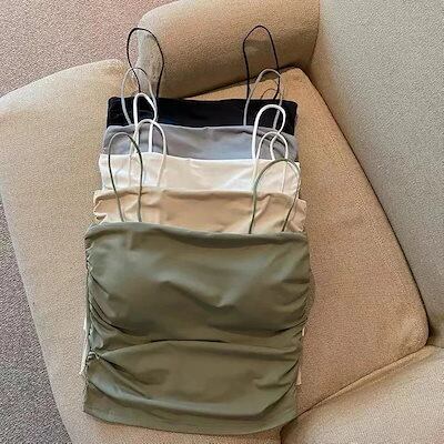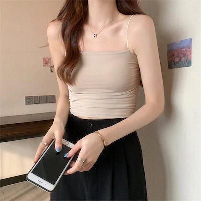 2024 人気 カップ付きインナー 着やせ アイスシルク アンダーウェア トップス ストラップレスブラ キャミソール タンクトップ ヨガ 美背 レディース