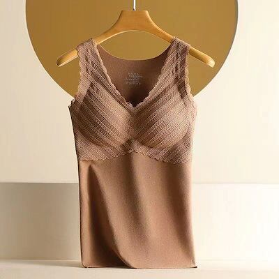 2024 人気 2枚セット カップ付きインナー ノーブラ保温衣レース Vネック レース保温ベスト キャミソール タンクトップ ヨガ 美背 レディース
