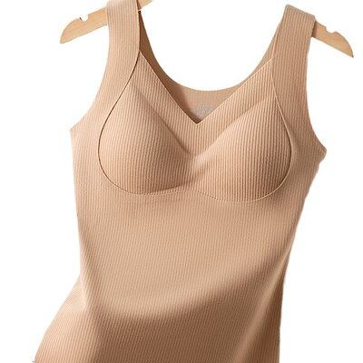2024 人気 カップ付きインナー 保温チョッキに綿毛で厚めの秋冬保温下着 キャミソール タンクトップ ヨガ 美背 レディース