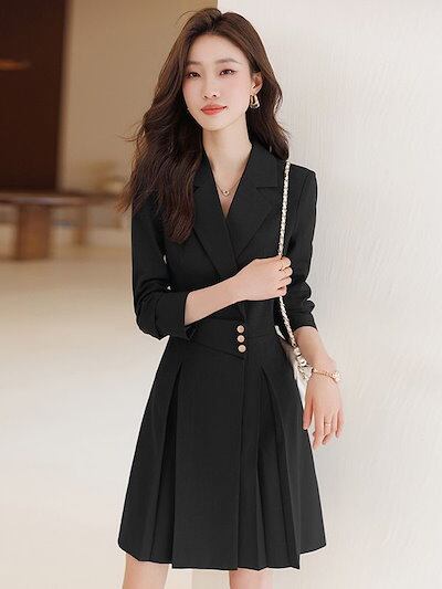 ワンピース スーツワンピース 高品貭 プリーツ スリミング 韓国 ワンピース ドレス パーティードレス ロングワンピース 卒業式 ママ スーツ 入学式 ママ スーツ タイトワンピース