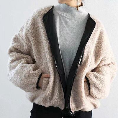 AWアウター韓国冬の女性用コットンパッドジャケット両面ボアブルゾン ジャケット秋冬 レディース人気ボアアウターキルティングアウター