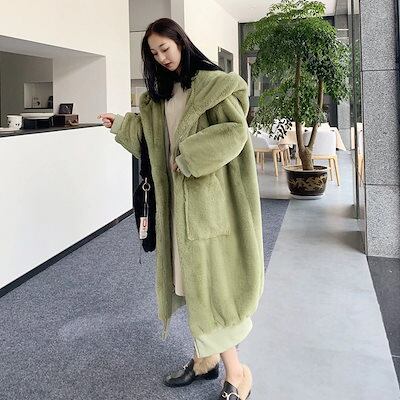 AWアウター秋冬 エコファー コート ふわふわ モコモココート ボアパーカー レディース 冬アウター モコモコ 防寒可愛い 膝下丈 肌触り良く 柔らい おしゃれ 大人
