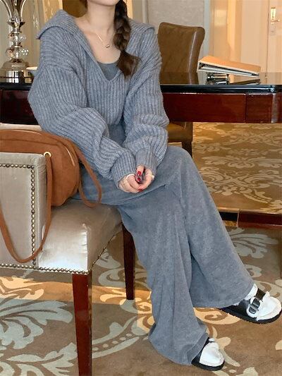 【2枚購入で 3oo円OFF!】可愛い カジュアルショット丈 セーター レディース Vネックセーター Vネックニット 秋冬 ロング ニットトップス 流行り リブニットカシミヤタッチ 福袋