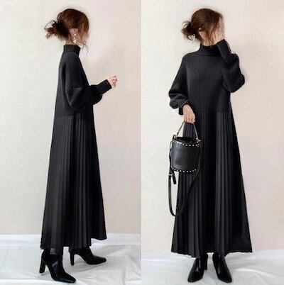 新作 シンプル ニット 切り替え ワンピース ロングワンピース ワンピース ワンピース 秋冬 長袖 Tシャツワンピース 大きめサイズ