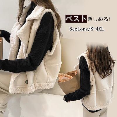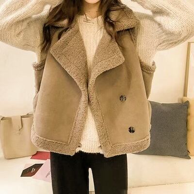 新作 おしゃれ ベスト 冬アウター ジャケットラムズウール 裏起毛 厚手 シンプル ベスト ゆったり ノースリーブ 秋冬 AWアウター 韓国ファッション