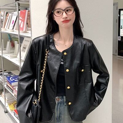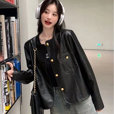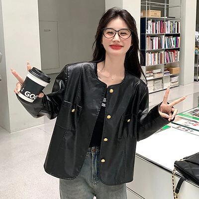 2024 秋 新作ライダースジャケット アウター ゆったり ショート pu レザージャケット 韓国ファッション 流行り トップス ショット丈 革レディース 着痩せ ジャケット