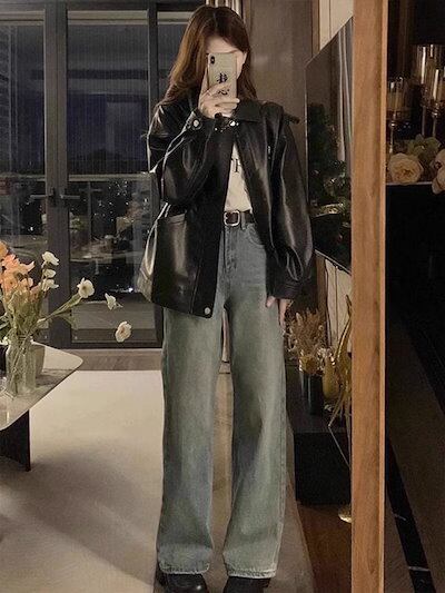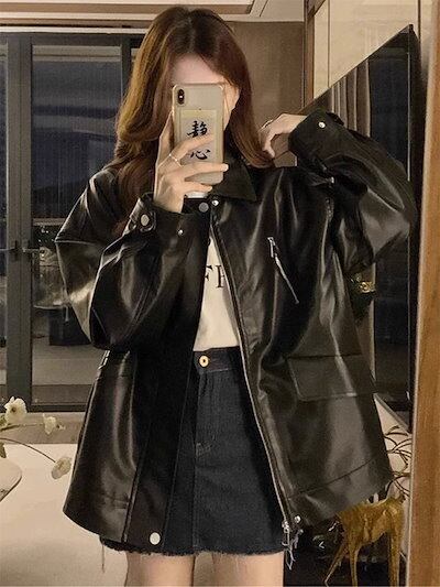 2024 秋 新作ライダースジャケット アウター ゆったり ショート pu レザージャケット 韓国ファッション 流行り トップス ショット丈 革 着痩せ ジャケット