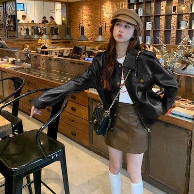 2024 秋 新作ライダースジャケット アウター ゆったり ショート pu レザージャケット 韓国ファッション 流行り トップス ショット革 着痩せ ジャケット