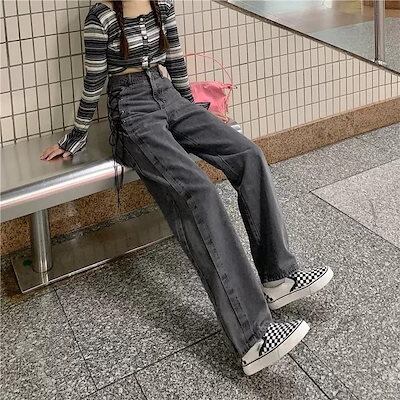 大人気 デニムパンツ 秋 新作 ボトムス ゆったり カジュアルシルエット レッグロングパンツ 学生 ファッション系 レディース 脚長効果 美脚効果