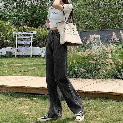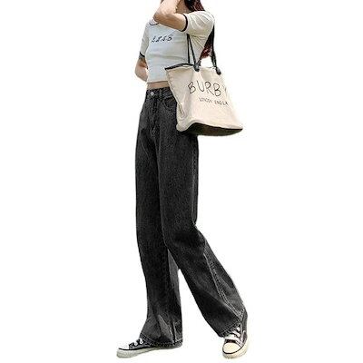 大人気 デニムパンツ 秋 新作 かっこいい!スラックスパンツ人気スラックスパンツレトロジーンズ/ 着痩せ ハイウエスゆったりストレートズボン レディース 脚長効果 美脚効果
