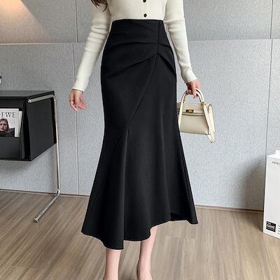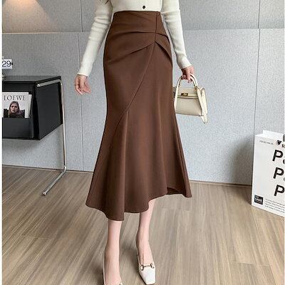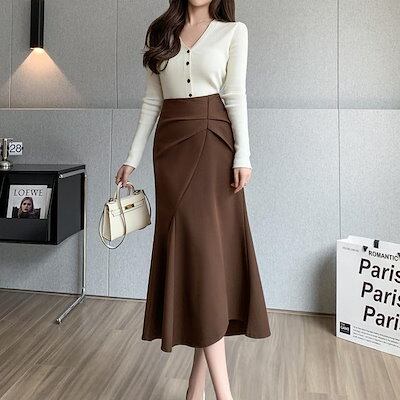 2024 人气 秋 新作 ミディアムスカート ウールのスカート ミディアム A字スカート タイトスカート フレンチスカート 百掛け やせて見える 韓国ファッション 韓国ファッション