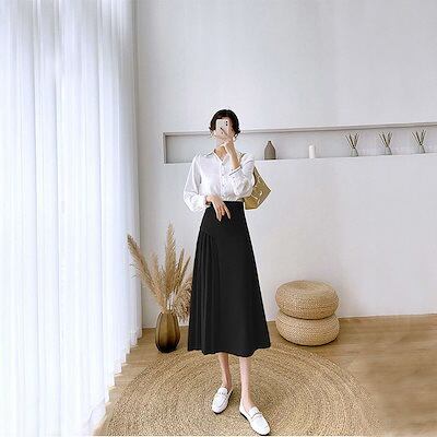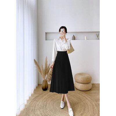 2024 人气 秋 新作 ミディアムスカート 垂下感 不規則 プリーツスカート スーツ A字スカート 百掛け やせて見える 韓国ファッション 韓国ファッション