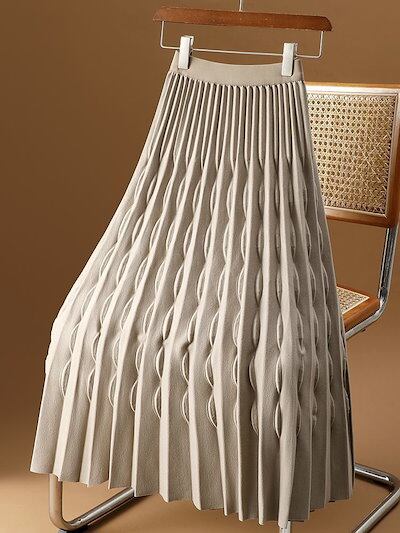2024 人气 秋 新作 ロングスカート アプリコット プリーツスカート 半そでスカート レディース 秋冬 新しいスタイル ウェーブプリーツ 大きな裾 ロングスカート 韓国ファッション