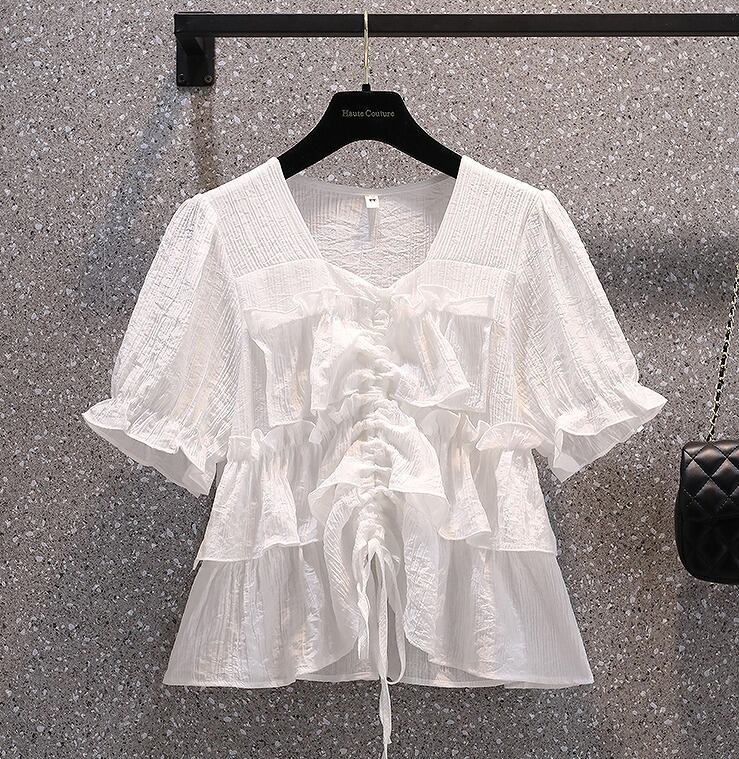 【大きいサイズM-4XL】【春夏新作】ファッショントップス♪ホワイト/グリーン2色展開◆