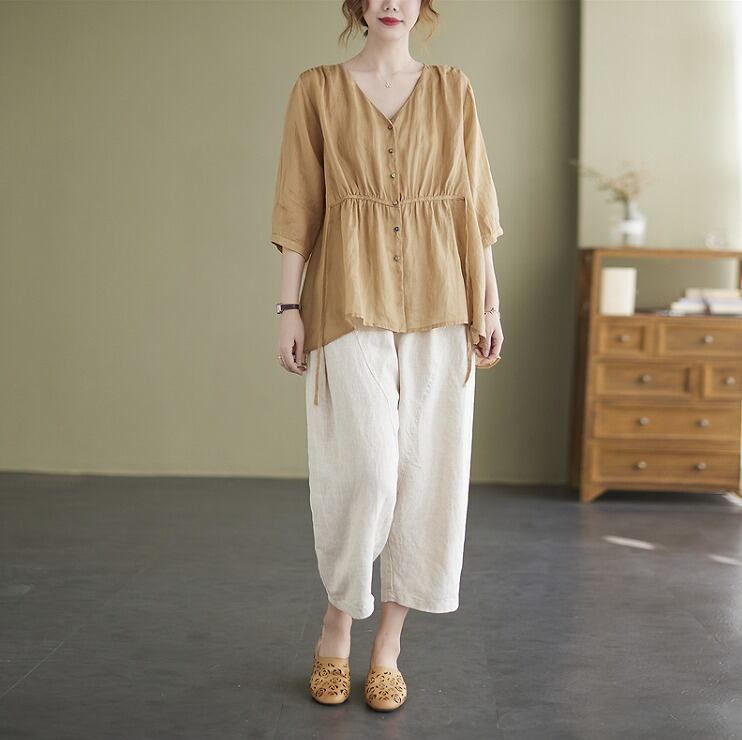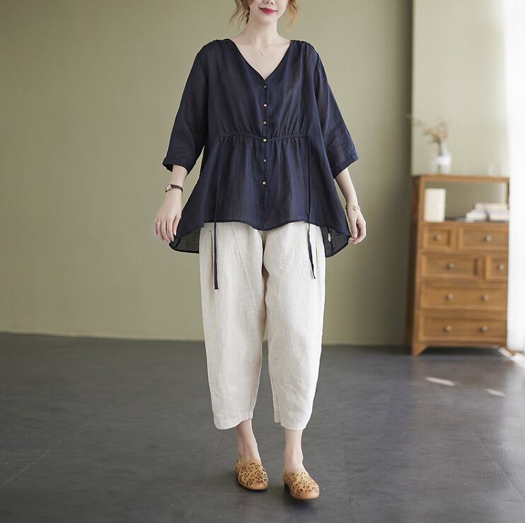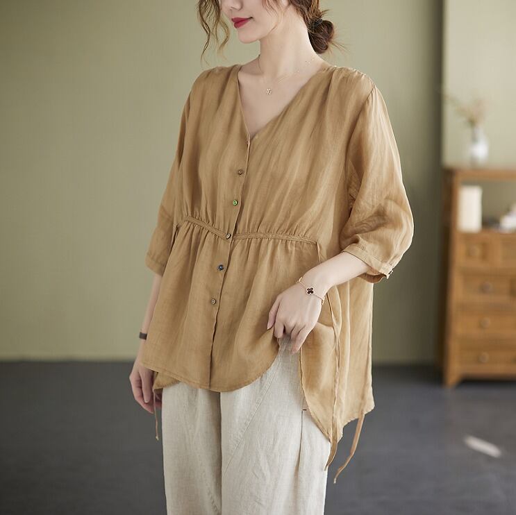 【春夏新作】ファッショントップス♪カーキ/ブルー2色展開◆
