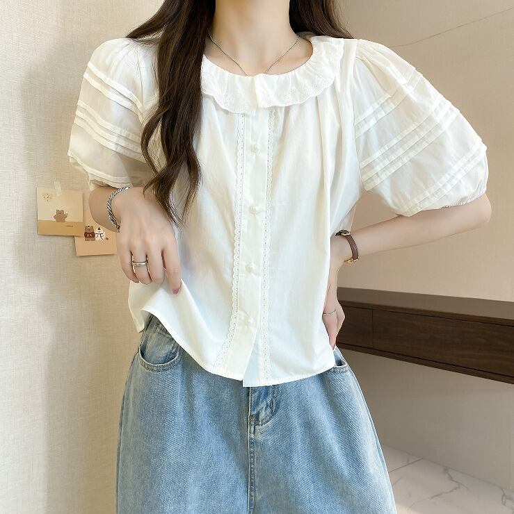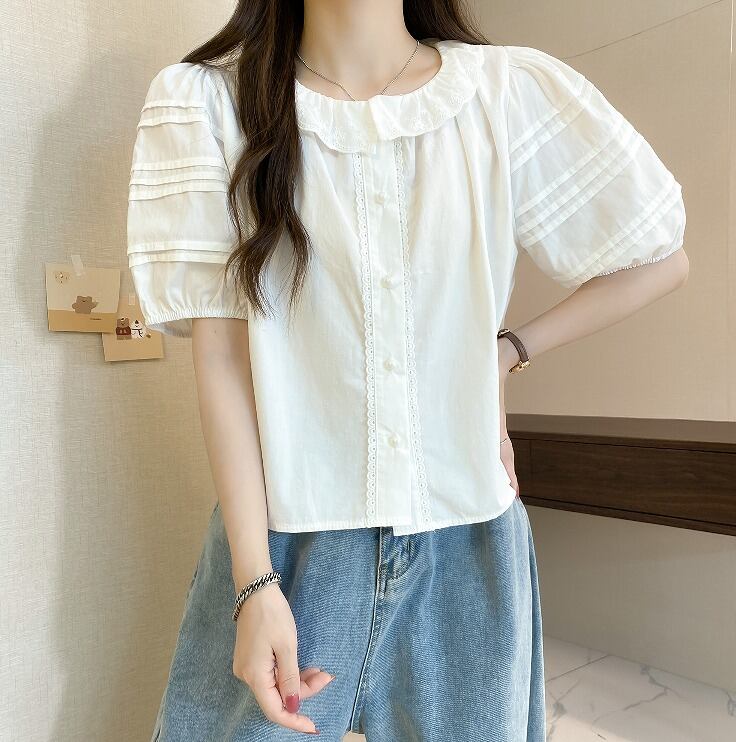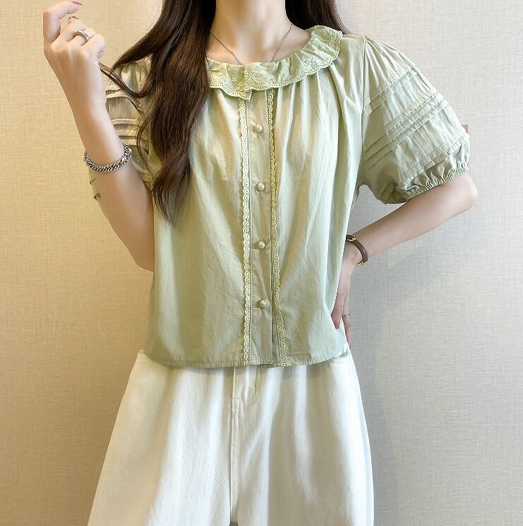 【大きいサイズL-4XL】【春夏新作】ファッショントップス♪ホワイト/グリーン2色展開◆