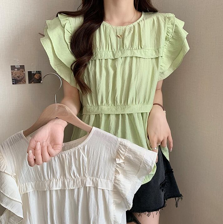 【大きいサイズM-4XL】【春夏新作】ファッショントップス♪グリーン/ホワイト2色展開◆