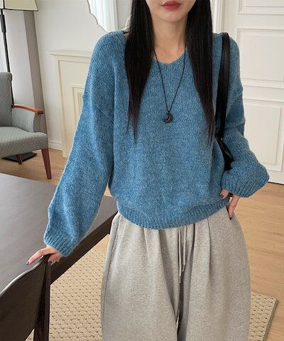 か弱いフィット Vネック 保温up 無地 ウールニット(6color)