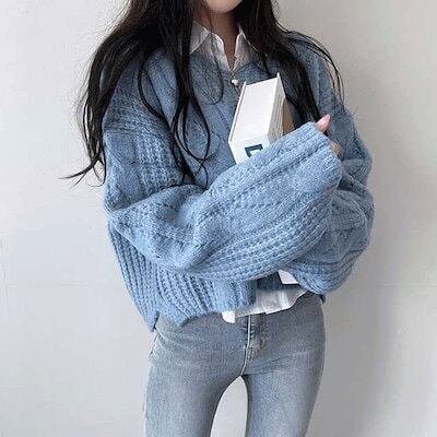 [フォックス/暖かい!] マシュマロ 暖かい Vネック スカッシュ オーバーフィット ニット